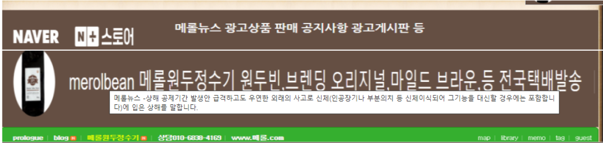 merolbean 메롤원두정수기 스마트스토어,쇼핑몰홈페이지 링크 2개,상품 또는 제품 사진2장 일33,000원 별도약정 광…
