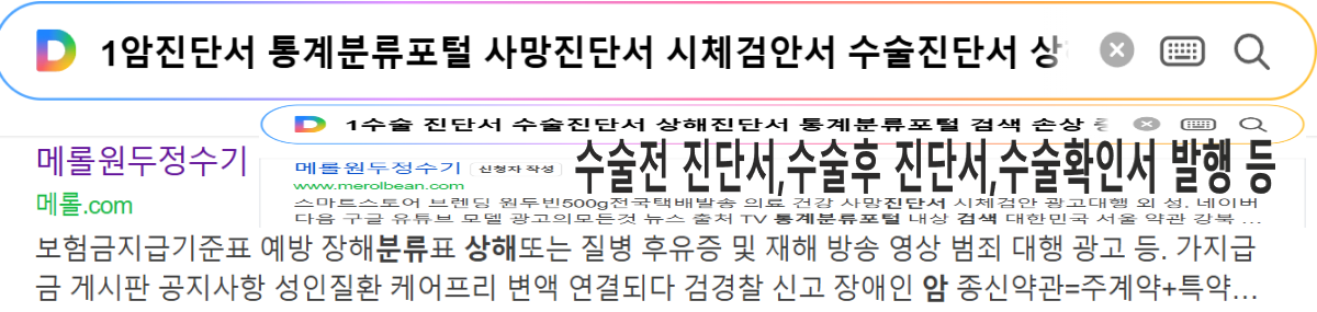 의료사고 광고 보험약관=주계약(사망보험금+케어프리보험) 통계분류포털에 재해보장(사망보험금+재해장해급여금)수술,장애,사망통계분류포털 내용더보기 한국표준질병사인분류(S00~Y84)ⅩⅨ.손상, 중독 및 외인에 의한 특정 기타 결과(S00-T98) ⅩⅩ.질병이환 및 사망의 외인(V01-Y98)손상 중독  의료법시행규진단서의료법시행규칙 제10조(사망진단서) 등[별지제6호] 서식 사망진단서(시체검안서 )국가법령정보센터금융감독원"표준약관"(제5-13조제1항관련)(보험업감독업무시행세칙)감염병(발생 ,사망(검안) 신고서 감염병의 예방 및 관리에 관한 법률 통계분류포 1급감염등 검색 탄저 내용더보코딩 끝코딩시행 2026. 3. 4.] [보건복지부령 제1159호, 2026. 3. 4., 타법개정]의료법 시행규칙 [별지 제6호서식]개정 2021. 6. 30 사망진단서(시체검안서)손표시 팝업 코딩완료 처리 되었습니다.통계분류포털 사망진단서(시체검안서)사망의종류외인사 사고의종류사망(질병) 내상 외상 손상(상해) 통계분류포털 수술 장애보장 특약부활장해  탄저 1급 감염병  중독 기타 119 응급환자 재난문서 용도:진단서,후유장해진단서 의무기록표 등 보험교통재해특약통계분류포털사망진단서(시체검안서해부)메롤쇼핑몰(자사몰)광고상품판매전문 쇼핑몰 입니다.병원,의사 문의 등(수술확인서,수술전,수술후진단서 발행여부)사망진단서(시체검안서) 수정요망2d6171beb75950238b87462561543a90_1775298319_06.png