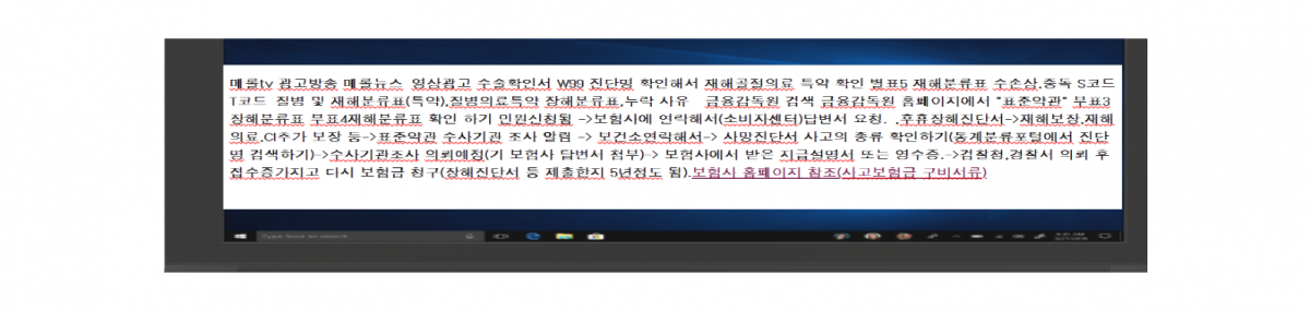 메롤tv 광고방송 메롤뉴스 영상광고 수술확인서 W99 진단명 확인해서 재해골절의료 특약 확인 별표5 재해분류표 손상,중독 S코드 T코드 질병 및 재해분류표(특약),질병의료특약 장해분류표,누락 사유  금융감독원 검색 금융감독원 홈페이지에서 "표준약관" 부표3장해분류표 부표4재해분류표 확인 하기 민원신청됨 ->보험사에 연락해서(소비자센터)답변서 요청. ,후휴장해진단서->재해보장,재해의료,CI추가 보장 등->표준약관 수사기관 조사 알림 -> 보건소연락해서-> 사망진단서 사고의 종류 확인하기(통계분류포털에서 진단명 검색하기)->수사기관조사 의뢰예정(기 보험사 답변서 첨부)-> 보험사에서 받은 지급설명서 또는 영수증.->검찰청,경찰서 의뢰 후 접수증가지고 다시 보험금 청구(장해진단서 등 제출한지 5년정도 됨).보험사 홈페이지 참조(사고보험금 구비서류)