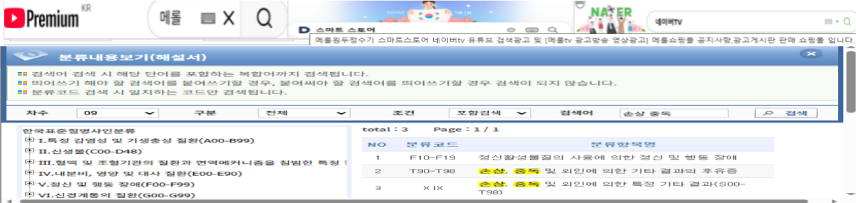 통계분류포털 링크 ⅩⅨ.손상, 중독 및 외인에 의한 특정 기타 결과(S00-T98) ⅩⅩ.질병이환 및 사망…