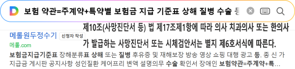 보험약관=주계약+특약별 약관으로 구성 되어 있습니다.보험금지급기준표,보험금지급내역서 비교하기 > 자막광고