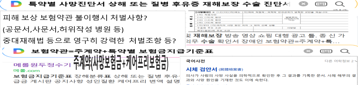 ※보험사 보험영업? 공문서(사문서) 사망진단서(허위작성) 사망의원인 수술의사의 주요소견,해부의사의 주요소견 등 ? 사망의종류 병사(자연사) & 외인사