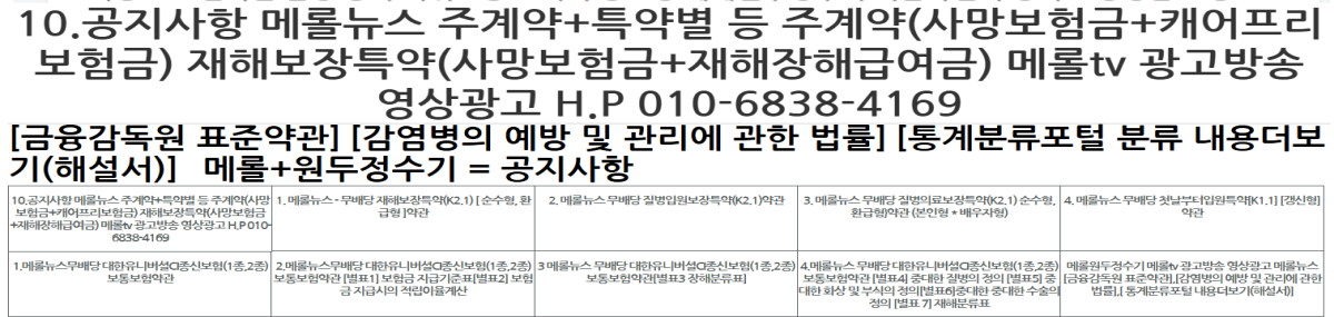 메롤뉴스 - 주계약( 사망보험금특약 +캐어프리보험금) 재해보장특약 (사망보험금 +재해장해급여금) 등 질병의료보장, 재해보장(장해진단금), CI추가보장 등 미수보험금 증빙자료 재해보장특 > 자막광고