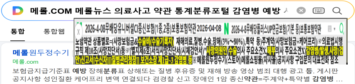 659f61c605e77da0526ecca59316a7db_1775943011_89.png8c483add45a6eb34fcc06c2820ab237e_1775901196_76.png659f61c605e77da0526ecca59316a7db_1775943163_86.png ​보험약관 상품별로=(사망보험금&수술비(수술기록지)  재해의료,질병,수술,장해(3%~80%),약  등)주계약(사망보험금+케어프리)의료법시행규칙 제10조(사망진단서)등[별지제6호]서식사망진단서(시체검안서)"사망의원인(수술의사 주요소견X,해부의사 주요소견X)감염병(발생,사망(검안)신고서[수신자][]질병관리청장[] 보건소장 제1급~3 감염병 메롤원두정수(스토어)메롤쇼핑몰(자사몰)공지사항 구입문의 대표전화 참조