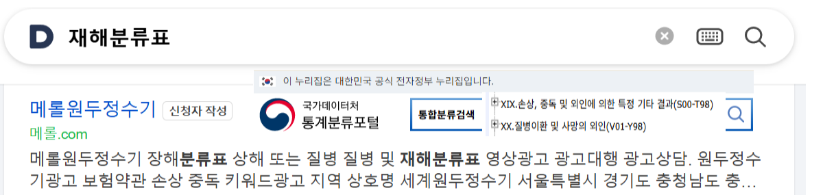 통계분류포털내용더보기 : 손상,중독 및 외인에 의한 특정 기타 결과(S00-T98),질병이완 및 사망의 외인(V01-Y98) 등(A00~Q99)등
