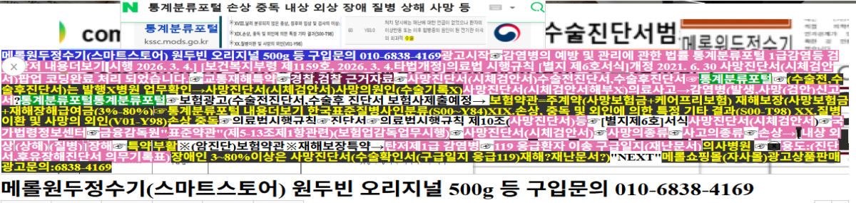 메롤원두정수기(스마트스토어) 원두빈 오리지널 500g 등 구입문의 010-6838-4169광고시작☞감염병의 예방 및 관리에 관한 법률 통계분류포털 1급감염등 검색 탄저 내용더보기 시행 2026. 3. 4.] [보건복지부령 제1159호, 2026. 3. 4.타법개정]의료법 시행규칙 [별지 제6호서식]개정 2021. 6. 30 사망진단서(시체검안서)팝업 코딩완료 처리 되었습니다.☞교통재해특약☞경찰,검찰 근거자료☞사망진단서(시체검안서)수술전,후☞통계분류포털☞(수술전,후)는"Ⅹ"병원발행→사망진단서(시체검안서)사망의원인(수술기록Ⅹ)사망(시체검안서해부Ⅹ)사고→감염병(발생,사망(검안)신고서?통계분류포털통계분류포털☞보험광고(수술전진단서,수술후 진단서 보험사제출예정→ 보험약관=주계약(사망보험금+케어프리보험)재해(사망보험금+재해장해급여금(3%-80%)☞통계분류포털 내용더보기 한국표준질병사인분류(S00~Y84)ⅩⅨ.손상, 중독 및 외인에 의한 특정 기타 결과(S00-T98) ⅩⅩ.질병이환 및 사망의 외인(V01-Y98)손상 중독☞의료법시행규칙☞진단서☞의료법시행규칙 제10조(사망진단서)등☞[별지제6호]서식사망진단서(시체검안서)☞국가법령정보센터☞금융감독원"표준약관"(제5-13조제1항관련)(보험업감독업무시행)☞사망진단서(시체검안서)☞사망의종류☞사고의종류☞손상→[내상 외상(상해)(질병)]장해☞특약부활※(암진단)보험약관※재해보장특약→탄저제1급 감염병☞119 응급환자 이송 구급일지(재난문서)의사병원 ☞ⓧ용도:(진단서,후유장해진단서 의무기록표)장애인 3~80%이상은 사망진단서(수술확인서(구급일지 응급119)재해?재난문서?)"NEXT"메롤쇼핑몰(자사몰)광고상품판매 광고문의:6838-4169