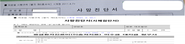 의료법 시행규칙 (별지) 제6호서식 사망진단서(시체검안서) 112,119 질병분류기호 심장정지 코드 등 특약 중 재해보장 별…