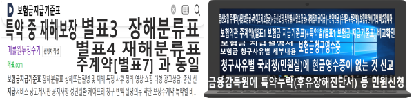 무배당 정기특약(K2.1) [순수형, 환급형]특약확인 보험약관 주계약(사망보험금+케어프리보험금)-별표1 보험금 지급기준표 별표2.보험금 지급시의 적립이율 계산 별표3 장해분류표 상해 또는 질병 별표4 중대한 질병의 정의 별표5 중대한 화상 및 부식의 정의 별표6  중대한 수술의 정의 별표7 재해분류표 특약 (사망보험금+재해장해급여금) 질병의료특약- 별표1 보험금 지급기준표 별표2 보험금 지급시의 적립이율 계산 별표 3 재해분류표 주계약 별표7동일 별표4 장해분류표 주계약 별표3과 동일 별표5 성인특정질환II 분류표(뇌경색 등) 암간호특약- 별표1 보험금 지급기준표 별표2 보험금 지급시의 적립이율 계산 별표3 장해분류표(주계약 별표3동일) 별표 4 재해분류표 재해보장특약 별표1.보험금 지급기준표 별표2.보험금 지급시의 적립이율 계산 별표3.장해분류표(주계약 별표3과 동일) 4.별표 재해분류표(주계약 별표7과 동일) 특약별 약관-미수보험금 청구건으로 금융감독원 민원신청함,※ 근거자료 1보험금 지급설명서,2청구사유별 세부내용,3.보험금청구 영수증,후유장해진단서,장해급여금,사망보험금,진단금,수술비,이외에도 특약별로 보험증권과 비교, 등 , 감염병의 예방 및 관리에 관한 법률,※ 한국표준질병사인분류상의→통계분류포털(재해분류표 약관 하단에 표시됨)더보기에서 진단명 또는 진단코드 확인