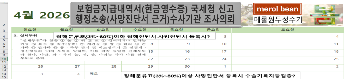 659f61c605e77da0526ecca59316a7db_1775943011_89.png659f61c605e77da0526ecca59316a7db_1775943163_86.png보험약관 상품별로=(사망보험금&수술비(수술기록지)재해의료,질병,수술,장해(3%~80%),약  등)주계약(사망보험금+케어프리)의료법시행규칙 제10조(사망진단서)등[별지제6호]서식사망진단서(시체검안서)"사망의원인(수술의사 주요소견X,해부의사 주요소견X)감염병(발생,사망(검안)신고서[수신자][]질병관리청장[] 보건소장 제1급~3 감염병 메롤원두정수(스토어)메롤쇼핑몰(자사몰)공지사항 구입문의 대표전화 참조